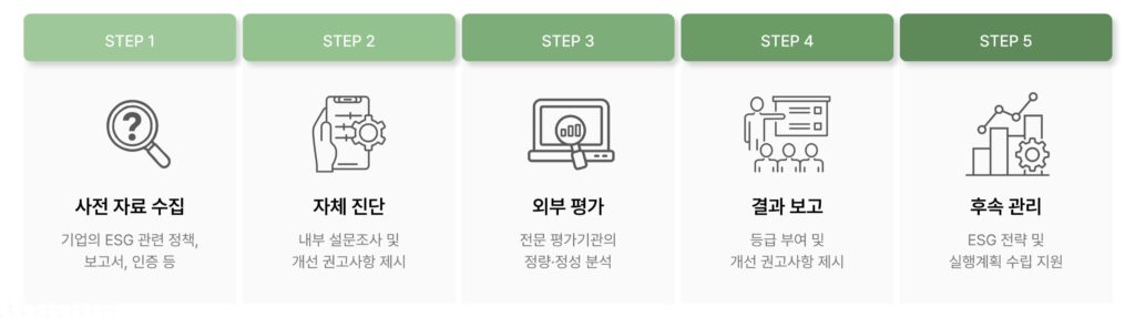 ESG 평가는 기업의 지속가능경영 수준을 환경(Environment), 사회(Social), 지배구조 (Governance) 세 가지 관점에서 종합적으로 진단·평가하는 제도입니다. 이는 단순한 재무 성과를 넘어, 기업이 이해관계자(고객, 임직원, 투자자, 지역사회 등)와의 신뢰를 강화하고 장기적인 경쟁력을 확보하는 데 중요한 지표로 활용됩니다.